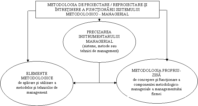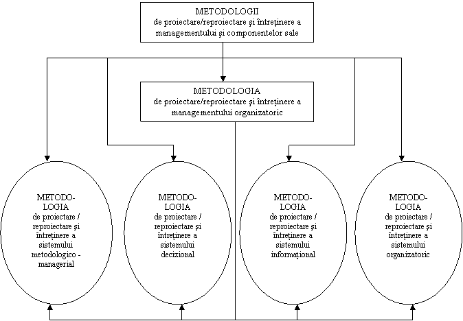 Prezentam in continuare o varianta de metodologie de reproiectare a sistemului metodologico-managerial, care are in vedere organizatiile de dimensiuni mari si medii, unde se inregistreaza maximum de complexitate si dificultate. In cazul organizatiilor mici si a microfirmelor se recomanda variante mult simplificate, corespunzator dimensiunii si resurselor fiecareia.