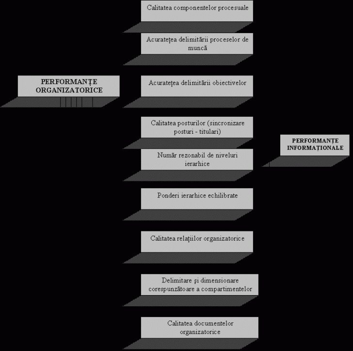 PERFORMANTE ORGANIZATORICE Calitatea componentelor procesuale Acuratetea delimitarii proceselor de munca Calitatea posturilor (sincronizare posturi -