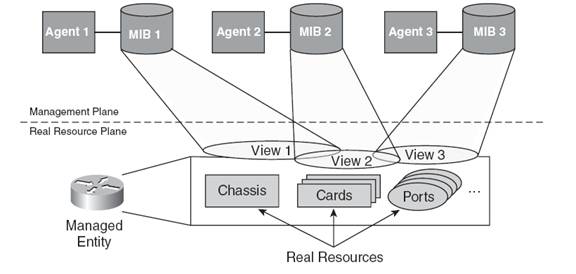Un agent de management suporta un anumit protocol de management pentru a comunica cu manager-ul, si acel protocol dicteaza modul de expunere a elementului managed - adica regulile sintactice de reprezentare a informatiei in MIB, modul in care obiectele sunt accesate de aplicatiile de management si modul de structurare a MIB-ului. Desi in teorie MIB-urile ar putea fi definite astfel incat sa fie independente de protocolul de management, in practica, diferitele protocoale de management au nevoie de modul lor specific de reprezentare a dispozitivului, care duce la implementari de MIB diferite. Cateodata, aceeasi resursa este reprezentata prin mai multe MIB-uri.
