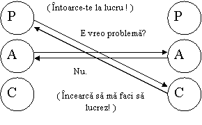 Adultul este singura stare de spirit interesata si receptiva la informatii. Copilul este interesat in primul rand de satisfacerea dorintelor sale. Mesajele sale sunt emise in incercarea de a-si exprima nevoile. Parintele isi asuma rolul de emitator in prezentarea mesajelor sale moralizatoare. Doar Adultul este cel care receptioneaza, proceseaza informatii si acorda feedback in incercarea de a intelege o alta persoana.