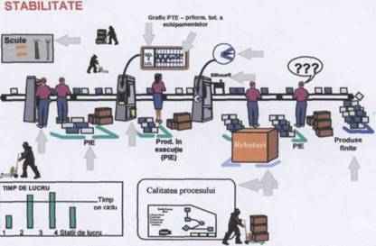 Prima etapa se refera la asigurarea unor statii de lucru stabile cu capacitate de productie consistenta si care sa se realizeze cu ajutorul unor masuratori riguroase privind timpii pe ciclu, performantele angajatilor si echipamentelor avand la baza programarea riguroasa a programului de productie.