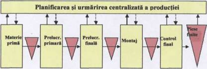 In Fig.4 este prezentat sistemul clasic, care este condus centralizat, planificarea si urmarirea productiei desfasurandu-se pas cu pas .
