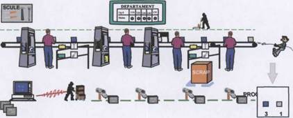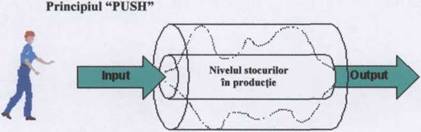 In figura urmatoare, 5 se poate observa modul in care sistemul clasic de productie "impinge" materialele pe linie, conform principiului PUSH.