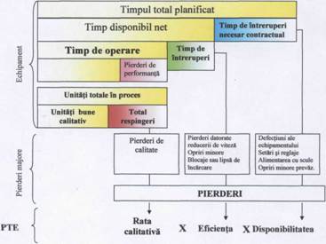4. Performanta totala a echipamentelor (PTE) - este o masura a disponibilitatii, eficientei si ratei calitative pentru un produs dat pe un echipament (punct de lucru) dat.