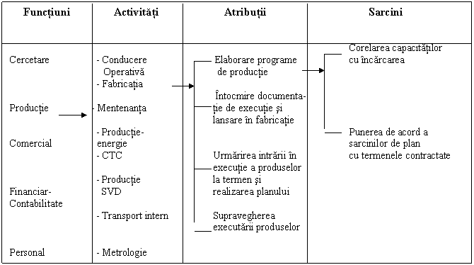 Organizarea pe functiuni, activitati, atributii si sarcini are un caracter general in sensul ca ele exista mai mult sau mai putin dezvoltate in toate intreprinderile industriale.