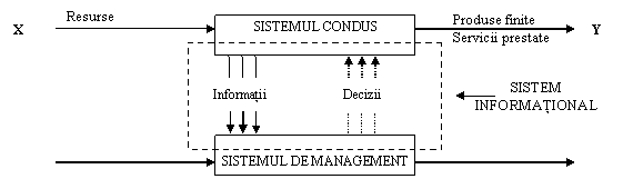 Acest sistem, reprezentat de o organizatie, se poate descompune in subsisteme, care se intrepatrund, astfel rezultand sistemul condus, sistemul de management si sistemul informational [Lungu03], dupa cum este reprezentat in Figura 4.