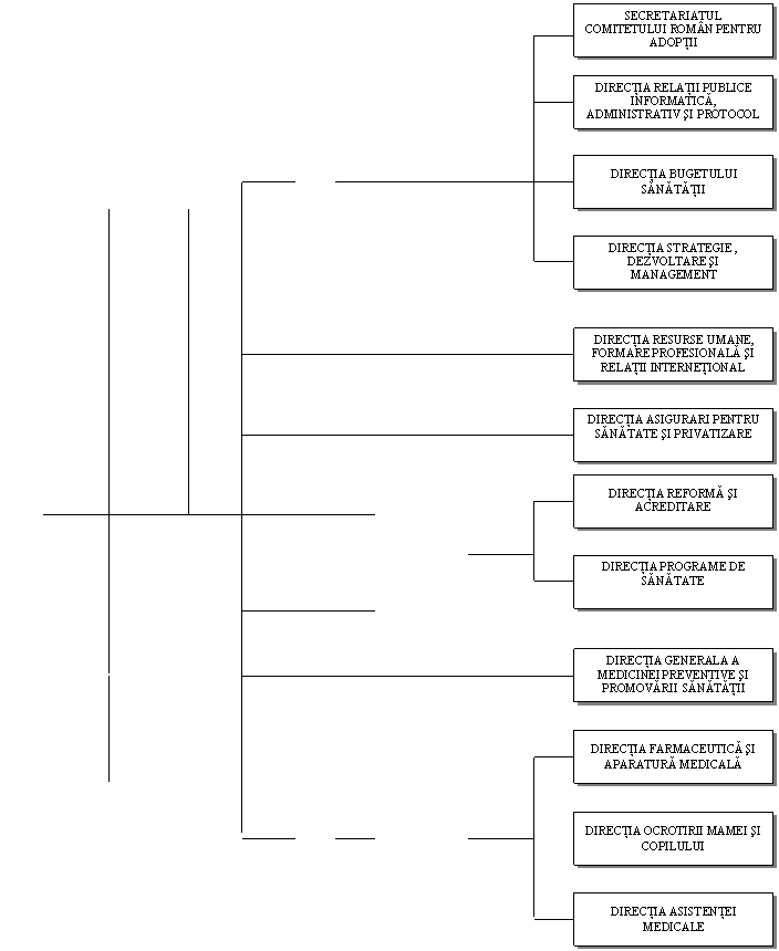 Structura organizatorica a Ministerului Sanatatii, ca element component al structurii de conducere se compune din directii de specialitate coordonate de catre ministru si ministrii secretari de stat.