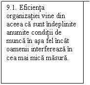 G.A. Cole sustine (2000,p.69) ca exista trei praguri de eficienta: aparenta (managerul demonstreaza ca da dovada de eficienta doar prin faptul ca economiseste resurse), personala (realizarile managerului sunt in interes propriu) si de lider (prin antrenarea colaboratorilor).