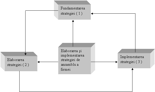 Elaborarea si implementarea strategiei de ansamblu a societatii comerciale sau regii autonome implica un proces structurat, in principal, in trei etape majore, in cadrul carora se ruleaza mai multe faze ( fig. 20.)