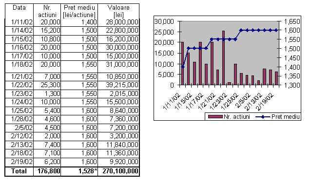 Urmare a Hotararii Adunarii Generale Extraordinare din data de 13.04.2001 capitalul social se majoreaza cu 2.248.856.000, de la 2.952.400.000 la 5.201.256.000 lei prin emisiunea de 2.248.856 noi actiuni cu valoare nominala de 1000 lei, in doua etape, astfel:
