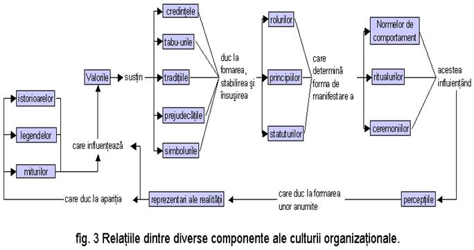 Cultura organizationala contine ca elemente esentiale un set de credinte, valori si norme comportamentale care reprezinta platforma de baza privind perceptia salariatilor in privinta lucrurilor care se intampla in organizatie.