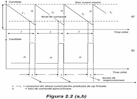aprovizionare, distributia statistica a cererii, conditiile de furnizare. In figura 2.2. (a si b) se prezinta corelatia dintre procesul de formare si cel de utilizare a stocului curent de cherestea cu programul de fabricatie al produsului 'usi finisate'.