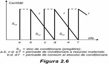 Dupa conditionare, materialele se trec in stoc curent pentru utilizare pe destinatiile de consum prevazute. Semnificativ este faptul ca, pentru cazurile in care conditionarea se poate face pe parcursul stationarii materialelor in stoc curent si, inclusiv, de siguranta, durata de stocare fiind suficienta pentru aceasta operatie, constituirea stocului de pregatire poate fi evitata sau cel putin limitata - aspect care contribuie la diminuarea efortului general de stocare. Dinamica stocului de conditionare se prezinta in figura 2.6.