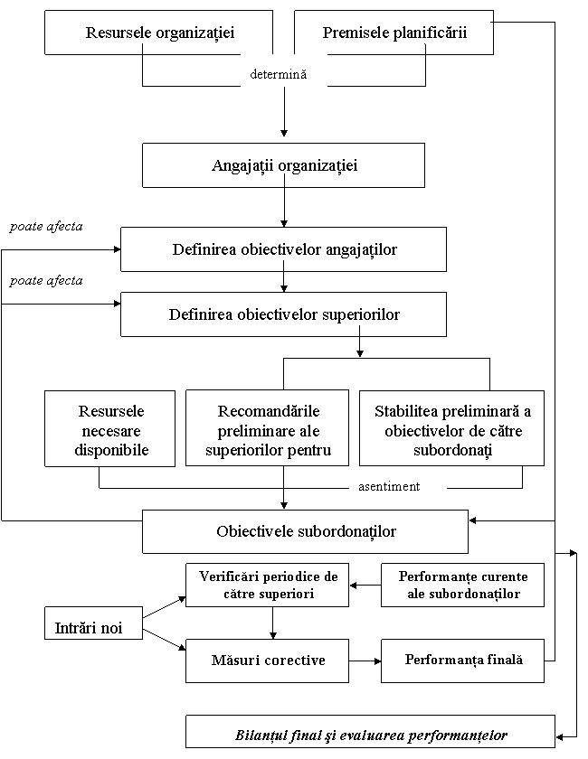 In figura de mai jos e prezentata schema procesului MBO, care porneste de la nivelul managementului strategic si are sprijin activ din partea sefilor executantilor.