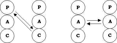 A) Starea de Parinte (P) contine totalitatea mesajelor si atitudinilor parentale critice sau binevoitoare receptionate si interiorizate de-a lungul vietii; acest tip de mesaje (cuvinte si/sau gesturi) au fost emise de diferite instante ale autoritatii cu care care individul s-a confruntat direct: parinti, bunici, frati mai mari, educatori de diverse grade, sefi etc., sau indirect: legi scrise (Biblia, Codul rutier etc.) sau nescrise (regulile de politete, ritualurile sau datinile, de exemplu). Mesajele parentale contin in special judecati despre lucruri si despre oameni (de altfel, peste 70% din mesajele noastre verbale reprezinta astfel de judecati). Acestea, numite judecati preconcepute sau prejudecati, sunt un fel de "semafor" interior si ne determina sa respectam "culoarea rosie", castigand timp datorita experientei celor care au verificat actiunea respectiva inaintea noastra: "E bine sa"/"nu e bine sa". Parintele are continut dual: PC (Parintele Critic) si PB (Parintele Binevoitor). Fiinta umana este silita sa inregistreze - sub forma de mesaje verbale si non verbale - norme, reguli, opinii si judecati despre oameni, fenomene, lucruri inainte de a fi in stare sa analizeze corectitidinea, validitatea sau non validitatea acestor norme; inregistreaza, de asemenea, precoce, pattern-uri de comportament, moduri de vorbire sau inflexiuni ale vocii dominatoare, critice sau devalorizante, ori, dimpotriva, predominant incurajatoare, protectoare, binevoitoare "hranitoare". O persoana aflata in starea de Parinte reproduce inconstient un astfel de comportament perceput anterior la parinti sau educatori, in general la o persoana intruchipand un prototip de autoritate. Asa cum am afirmatdeja, starea de Parinte are o structura duala simetrica: