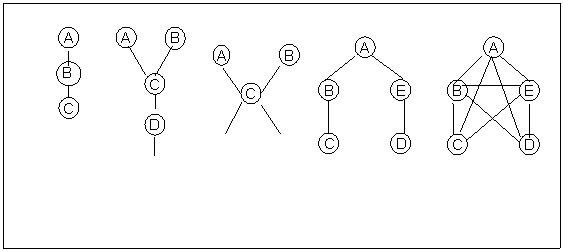 Fig. 1. Retele de comunicare posibile intre 5 persoane