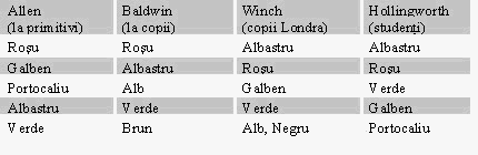 R. W. Schulte stabileste, pe baza experimentala, o scara a culorilor, impartita in cinci clase, in care se cuprind o multime de nuante cromatice dupa valoarea lor perceptiva si aperceptiva.