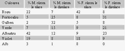 Wissler a studiat preferinta pentru culori la ambele sexe: