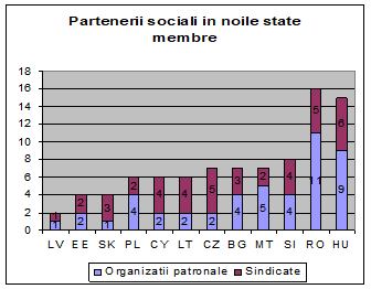 În anul 2006, în România activau 12 asociatii patronale si 5 confederatii sindicale. Asociatiile patronale sunt de data relativ recenta, fiind înfiintate dupa anul 1990. Studii comparative, întreprinse la nivel european, au relevat faptul ca, în Europa Centrala si de Est, organizatiile patronale tind sa fie numeroase, disparate si, din aceste cauze, impactul si influenta sunt mai scazute[1]. O alta problema, considerata de catre Comisia Europeana[2] drept una din principalele slabiciuni ale relatiilor industriale din regiune o constituie nivelul scazut de afiliere a angajatorilor. Partea sindicala se confrunta cu probleme similare. Caderea comunismului si restructurarea economica, mai ales privatizarea, au generat o scadere drastica a numarului membrilor de sindicat, precum si fragmentarea structurilor (fig.nr.1). Totusi, în ultimii trei-patru ani, s-au facut pasi importanti catre „coagularea” partenerilor sociali, 8 asociatii patronale formând o alianta si 3 confederatii sindicale coalizându-se.