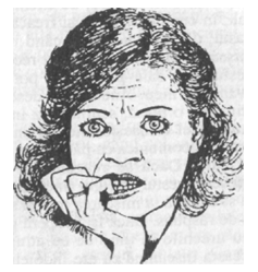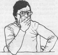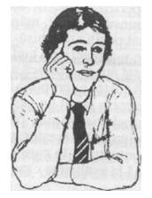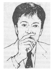 Oamenii care poarta ochelari, in timp ce iau o decizie adesea si-i scot si introduc unul din bratele ramei in gura, recurgand astfel, in locul gestului de mangaiere a barbiei, la un alt grup de gesturi de evaluare. Fumatorul de pipa isi va pune pipa in gura. Cand un om este solicitai sa ia o decizie, el isi introduce in gura un Figura 65. Personajul ia o decizie obiect oarecare, un pix sau