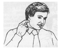 urechi (varful degetului este rotit inainte si inapoi in interiorul urechilor), tragerea lobului urechii sau impingerea inainte a intregii urechi pentru a astupa gaura urechii. Acest ultim gest inseamna ca respectivul a ascultat destul si acum ar dori sa vorbeasca.