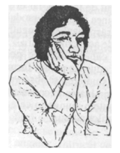 plictiseala si gestul e menit sa impiedice atipirea. Gradul de plictiseala al celui care asculta este legat de modul in care bratul si mana sa sunt utilizate ca suport al capului. Despre plictiseala maxima si lipsa totala de interes putem vorbi atunci cand capul este sprijini in intregime in mana (Figura 61), iar lasarea capului pe masa si aparitia sforaitului sunt semnul plictiselii absolute.