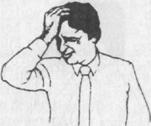 O versiune exagerata a gestului de tragere a gulerului este gestul prin care palma freaca ceafa, denumii de H. Calero 'gestul durerii de ceafa'. Cel care il utilizeaza de obicei minte, evita privirea celuilalt si se uita in jos. Este folosit insa si ca semna] al frustrarii sau maniei si, in asemenea cazuri, mana plesneste ceafa si incepe sa frece gatul. Sa presupunem, de exemplu, ca l-am rugat pe unul din subordonatii nostri sa rezolve o problema si el a uitat sa o faca in timpul stabilit. Cand il intrebam de rezultat, el isi plesneste usor cu palma capul, pe frunte sau ceafa, de parca in mod simbolic s-ar bate pe sine insusi. Desi plesnirea cu palma a capului indica non-verbal faptul ca el a uitat ceea ce i-am cerut sa faca, in functie de locul aplicarii acestui gest, pe frunte sau pe ceafa, respectivul ne semnaleaza si ce parere are despre noi sau despre situatia creata. Aplicand lovitura pe frunte (Figura 69), el ne semnalizeaza ca nu-l intimideaza faptul ca am remarcat greseala Iui, dar daca isi loveste ceafa (Figura 68), ne comunica fara cuvinte ca prin darea la iveala a erorii sale i-am provocat, pur si simplu, o 'durere de ceafa', adica o stare total neplacuta pentru el. Cei care utilizeaza frecvent frecarea cefei sunt predispusi la atitudini negative sau critice, in timp ce cei care isi recunosc eroarea, folosind des frecarea fruntii, in general sunt oameni mai deschisi, mai adaptabili.
