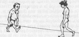 in cazul gestului etalarii genunchilor (Figura 121), unul din picioare este varat sub celalalt si indreptat in directia persoanei considerate interesante. Este o pozitie foarte destinsa, care exclude orice element de formalitate din conversatie si face posibila aratarea pentru o clipa a coapselor.