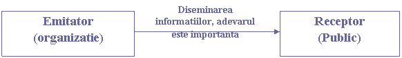 Ideea centrala a acestui model initiat la inceputul secolului XX este de a transmite publicului cat mai multe informatii despre organizatie. Avem de-a face cu o comunicare unidirectionala care uziteaza informatie reala si cat se poate de completa. Este vorba de o politica de transparenta, in care adevarul este elementul care leaga publicul de organizatie.