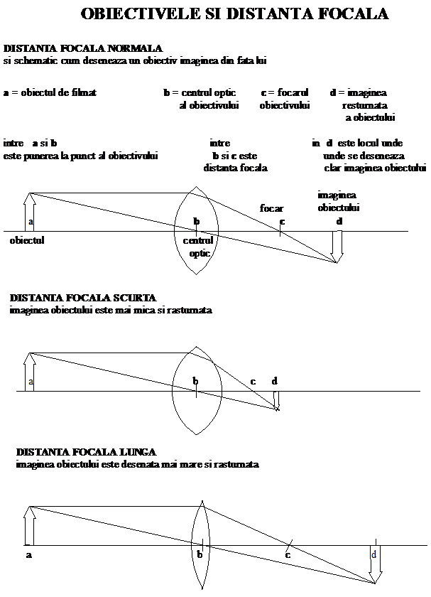 1 Obiective normale ,care are aproximativ acelas unghi de cuprindere ca si ochiul uman. Aceste obiective redau perspectiva in mod normal asemanatoare cu cea redata de ochiul uman. Zona pe care aceste obiective o deseneaza clar adica de la primul obiect din apropierea camerei si pana la ultimul si cel mai departat obiect desenat clar de asemenea este in limitele normalului.