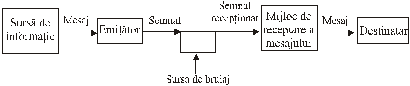 Schema Shannon - Weaver prezinta traseul unui mesaj care, elaborat de o sursa, este codificat de un transmitator sub forma unor semnale, ce parcurg un canal, pe traseul caruia se confrunta cu primejdia distorsionarii lor ca urmare a interventiei unei surse de zgomot, dupa care parvin la receptorul ce le decodifica, restituind mesajului forma initiala si incredintandu-l astfel destinatarului. Meritul fundamental al schemei este ca, desi conceputa in vederea explicarii unor aspecte specifice sferei telecomunicatiilor (cum am precizat mai sus), ea ne ingaduie sa intelegem mai bine esenta oricarei comunicari, de la transmiterea ereditara a caracterelor biologice, pana la discursul poetic, muzical sau cinematografic. C. Shannon a avut ideea de a stabili o relatie intre informatie si incertitudine, in sensul ca informatia reduce incertitudinea. Cantitatea de informatie pe care o obtinem cand se produce un eveniment este egala cu cantitatea de incertitudine care este asociata inaintea acestui eveniment. Masurand incertitudinea, Shannon ne ofera o unealta pentru masurarea informatiei (incertitudinea depinde de doi factori - numarul de evenimente posibile, cu cat sunt mai numeroase cu atat incertitudinea celui care se va produce este mai mare, si probabilitatea de producere a fiecaruia dintre evenimente).