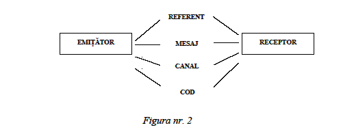 procesului de comunicare, adaugandu-i inca trei componente: cod, canal, referent (figura 2). Relatia de comunicare se realizeaza astfel: emitatorul transmite un mesaj intr-un anumit cod (limbaj) catre receptor, care va initia o actiune de decodare a mesajului ce i-a fost transmis. Acest mesaj este constituit intr-un anume cod care trebuie sa fie comun celor doi parteneri aflati in contact. Intre emitator si receptor are loc un transfer de informatie. Informatia pleaca de la emitator si devine informatie pentru receptor. Atat emitatorul, cat si receptorul sunt entitati orientate catre un scop. Emitatorul are scopul de a oferi, receptorul are scopul de a primi informatie.