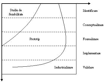Aceasta arata ca studiul de fezabilitate este foarte restrans, insa dezvoltarea prototipului si experimentarea reprezinta parti importante ale procesului de constructie (fig.2.38), diferenta intre macheta si prototip nu este foarte clara, dar ajuta la definirea mai precisa a conceptelor: prin prototip se inteleg subansambluri ale sistemului expert final, pe cand macheta este total independenta.
