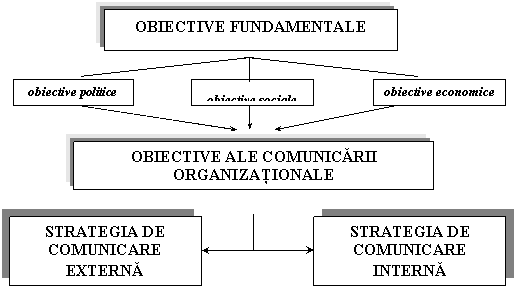 Obiectivele comunicarii organizationale deriva din orientarile fundamentale ale acesteia in domeniile: politic; social; economic. In fig.1 sunt reprezentate strategiile de comunicare pe care le poate adopta o organizatiei.