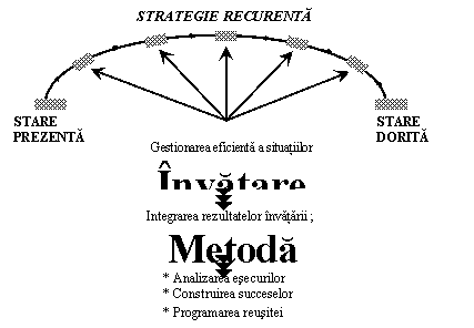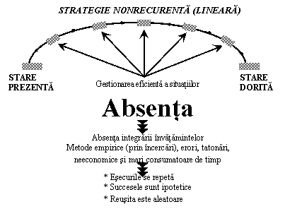 In cazul invers, respectiv in cel in care construirea reusitei se face doar pe baze teoretice, intalnim o strategie lineara (nonrecurenta), dovedit a fi deficitara, deoarece nu ia in considerare rezultatele si/sau invatamintele experientelor traite (fig. nr. 16):