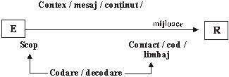 Indiferent de modelul asupra caruia ne indreptam atentia, procesul comunicarii presupune, deci, un transmitator (emitator, vorbitor), care trimite un mesaj unui destinatar (receptor, ascultator); mesajul se raporteaza la un context. Mesajul e constituit din elementele unui cod care trebuie sa fie comun celor doi parteneri aflati in contact.