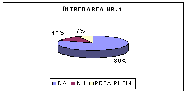 Intrebarea cu care debuteaza chestionarul "Va este cunoscut termenul de "reciclare" a deseurilor menajere?" a fost formulata cu intentia de a oferi o prima imagine a persoanei chestionate. Este o intrebare inchisa cu trei posibilitati de raspuns care imparte esantionul in persoane care cunosc termenul de reciclare (insemnatate, caracteristici, metode, raspandire, etc.) si persoane care-l cunosc putin sau deloc. Din tabelul si graficul alcatuit putem observa cu usurinta majoritatea covarsitoare (309 persoane) adica 80% a celor care au raspuns favorabil la aceasta intrebare. Numai 49 de persoane adica 13% au declarat ca nu cunosc acest termen si numai 26 de persoane adica 7% din persoanele chestionate nu sunt familiarizati cu acest termen dar au mai auzit vorbindu-se despre acesta in mijloacele mass-media sau in cercul de prieteni sau chiar cu ocazia unor vizite in strainatate.