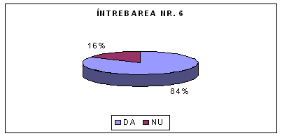 Intrebarea cu numarul 6 "Stiati ca deseurile menajere, in alte tari, sunt sortate in 4 categorii: hartie, materiale plastice, deseuri metalice si sticla, si resturi organice?", a fost formulata pentru a determina cunostintele persoanelor, care formeaza esantionul, in acest sens.