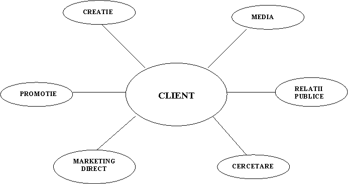 Agentia full services pune la dispozitia clientilor sai nu numai sericii de creatie si personal specializat in pregatirea publicitatii ci si specialisti in cecetare si marketing cara sa ajute clientul la planificarea procesului de comunicare.