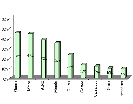 ocupa Flanco, urmat de Metro si Altex. Desi nu este un magazin