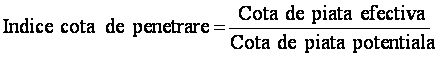 Orice firma poate compara cota de piata efectiva cu cota de piata potentiala, rezultand indicele cotei de penetrare.