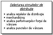 studii privind activitatea canalelor de distributie, evolutia vanzarilor pe diferite canale, eficienta diferitilor detailisti, a fortei de vanzare etc;