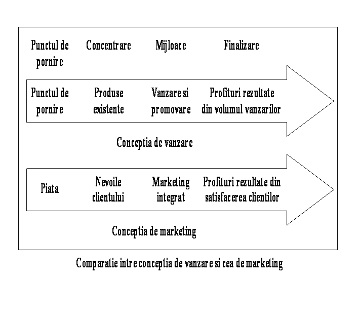 Surprinzator este faptul ca aceasta conceptie a aparut relativ recent. De multe ori se face confuzie intre conceptia de vanzare si cea de marketing. In figura urmatoare sunt comparate cele doua conceptii.
