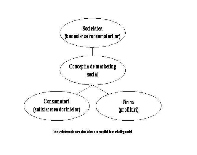 Astfel de preocupari si conflicte au dus la aparitia conceptiei de marketing social. Asa cum se prezinta in figura de mai jos, aceasta conceptie ii obliga pe operatorii de marketing sa ia in considerare trei aspecte atunci cand stabilesc politicile de marketing:
