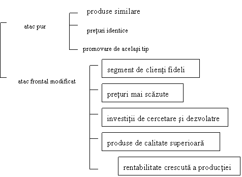 b.Atacul pe flancuri - consta in incercarea de a patrunde pe segmentul de cumparatori unde concurenta este mai slaba sau lipseste total