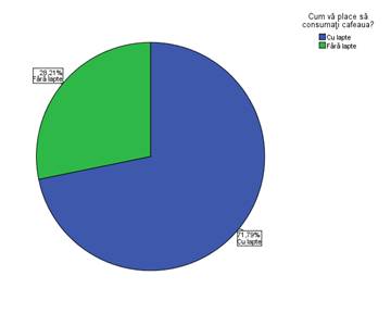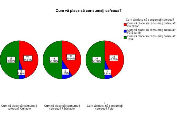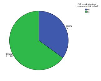 Cu ajutorul acestei intrebari se poate face o statistica cu privire la consumul de cafea si sexul respondentiilor. 55% din populatia interogata are sex feminin, iar 45% au sex masculin.