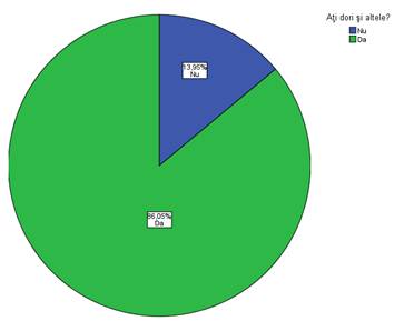 Aceasta intrbare este una filtru pentru a stabili daca exista o piata potentiala pentru alte bauturi. S-a stabilit ca 86,05% dintre respondenti ar dori si slte bauturi in automate, in timp ce 13,95% nu ar dori si altele.