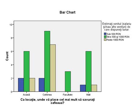 1. Am incercat sa vedem daca exista vreo legatura intre locurile unde isi beau repondentii cafeaua si veniturile lunare. Am observa in urma acestei corelatii ca nu exista legatura.