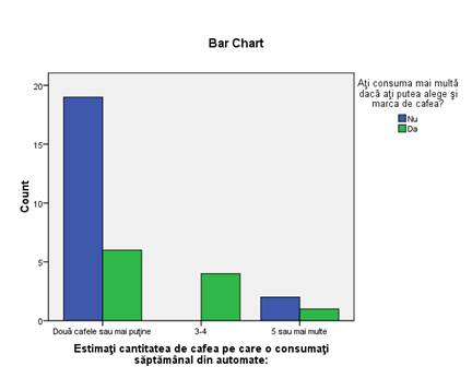 3. O alta concluzie care reiese din studiul nostru este aceea ca exsita o legatura foarte mare intre cantitatea de cafea consumata si situatia in care si-ar putea alege marca de cafea la automate, astfel schimbarea modului de comandare a cafelei nu este recomandata.