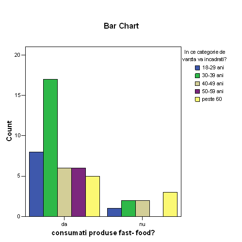 fiind 0,797), se respinge H1 si se accepta ipoteza H0: intre sexul masculin si cel feminin nu exista diferente cu privire la alegerea felului de mancare intr-un fast-food.